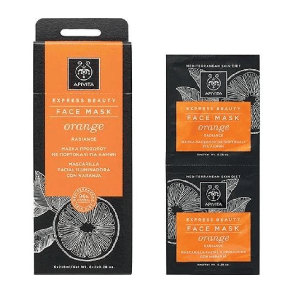 EXPRESS BEAUTY face mask with orange, a juicy fruity of the Mediterranean areas rich in vitamin C, and a cream-gel texture instantly recovers the skin's radiance.