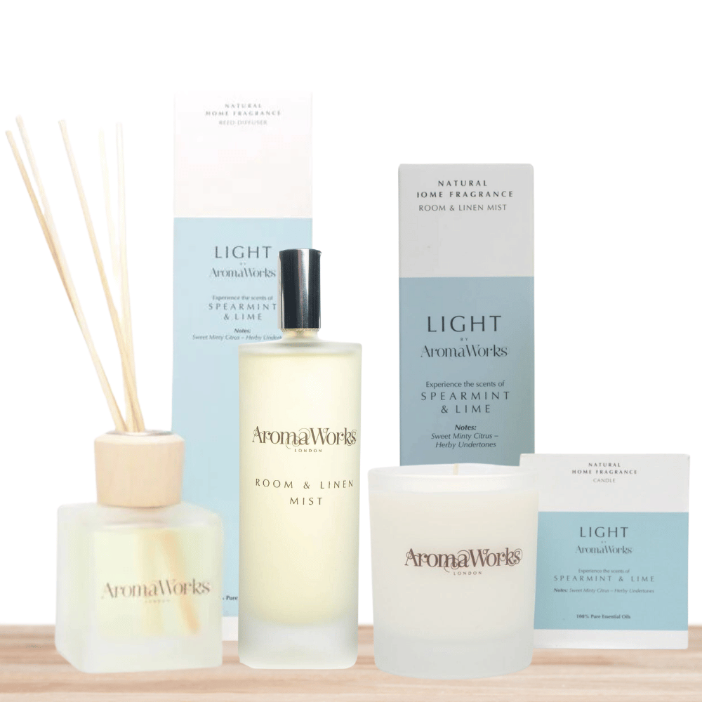 Refresh your abode with the uplifting fragrance of the Spearmint and Lime Room Mist from the 'Light Range' by AromaWorks.