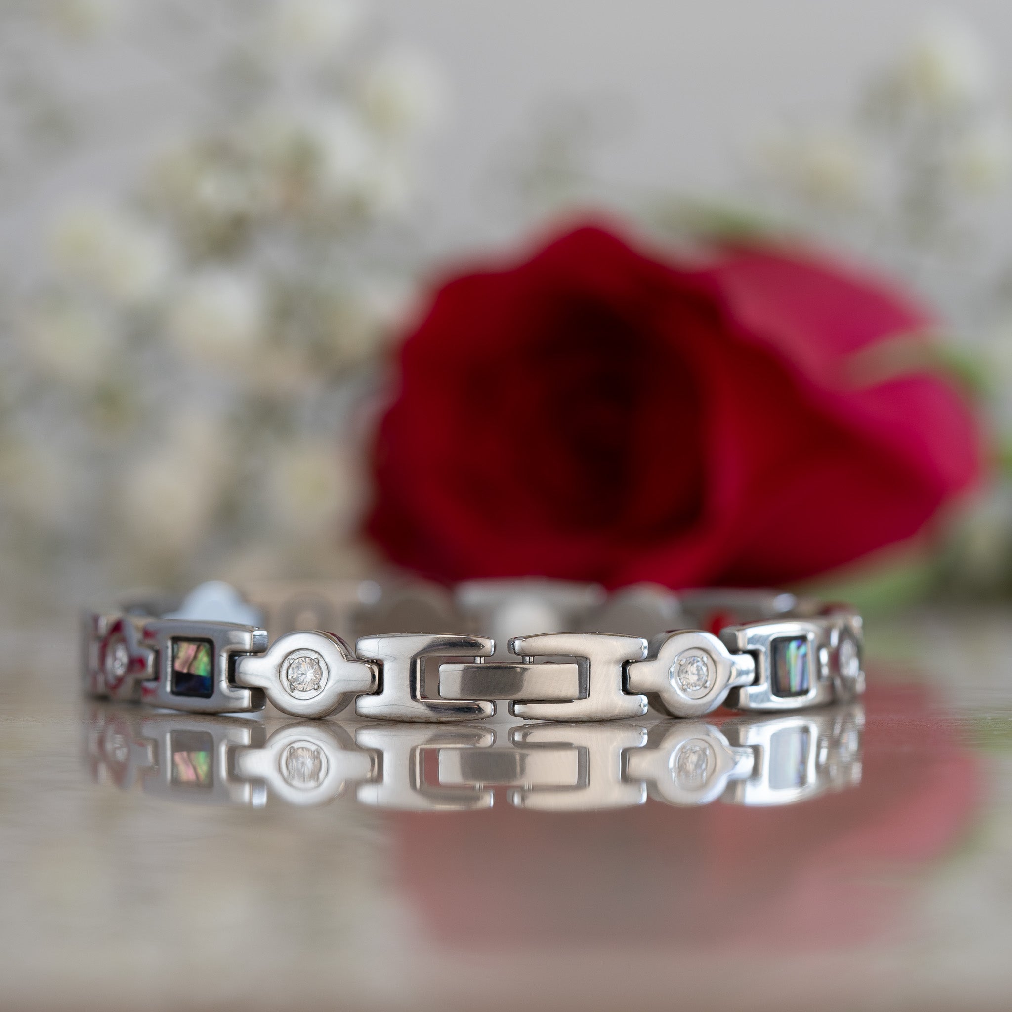 Crafted from premium stainless steel, Avens Star shines in its silver hue. Each bracelet is unique, with slight variations in colour due to its intricate design, making your piece truly one-of-a-kind. This bracelet is not just a fashion accessory; it's designed for people suffering from arthritis, back pain, migraines, fibromyalgia, and general aches and pains. It incorporates a powerful combination of four elements: Neodymium Magnets, Far Infrared (FIR), Germanium, and Negative Ions, each contributing to its distinctive characteristics. For more details on these elements, please see the information provided below.