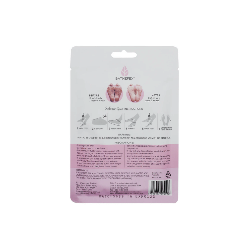 The Softsole Exfoliating Foot Peel offers a convenient at-home foot care solution. It effectively removes tough skin, softens calluses, and heals cracked heels. The formula is designed to initiate peeling of the feet within 3-7 days, unveiling softer skin in under two weeks.
