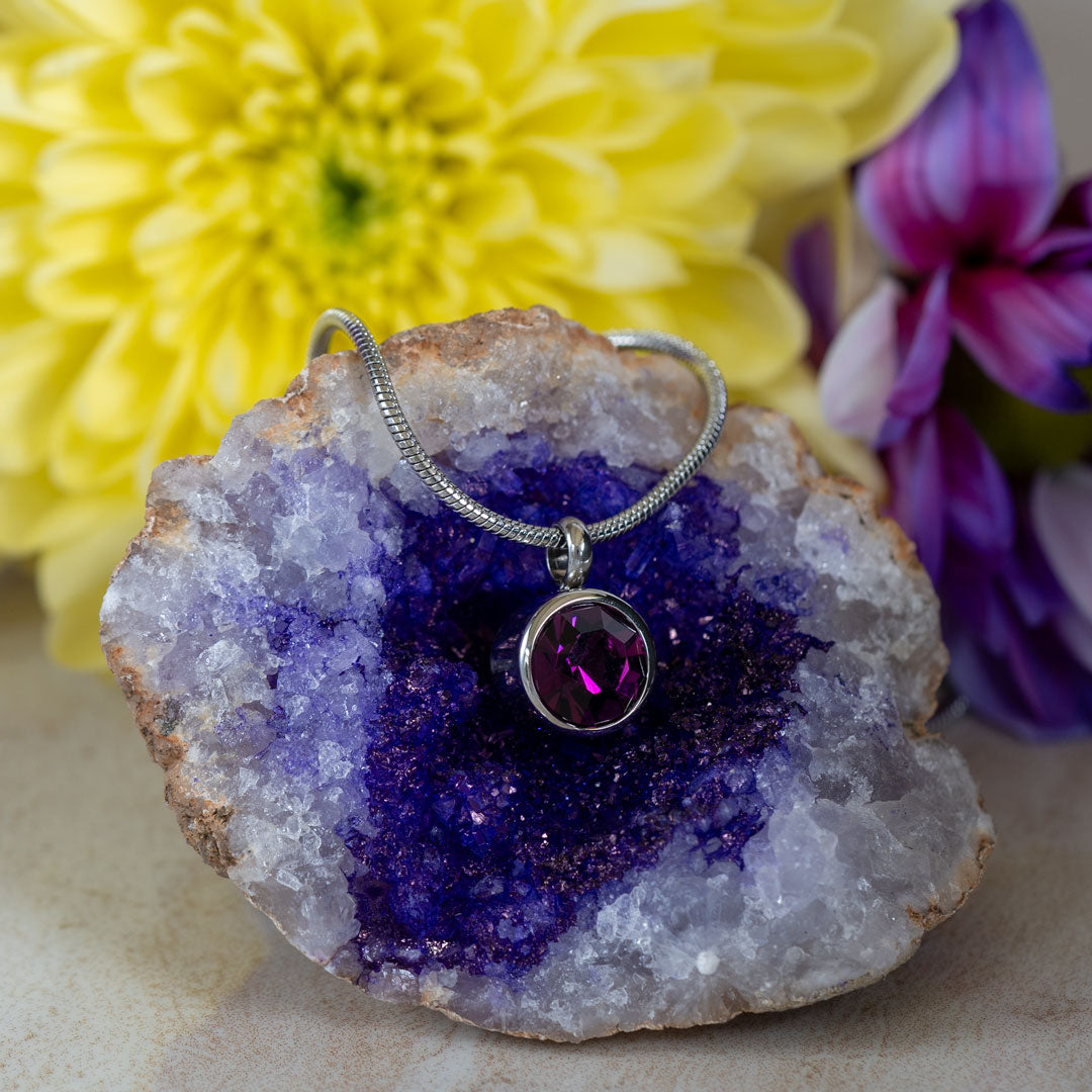 February: Swarovski Amethyst. The February birthstone is associated with healing, spirituality and mental clarity.