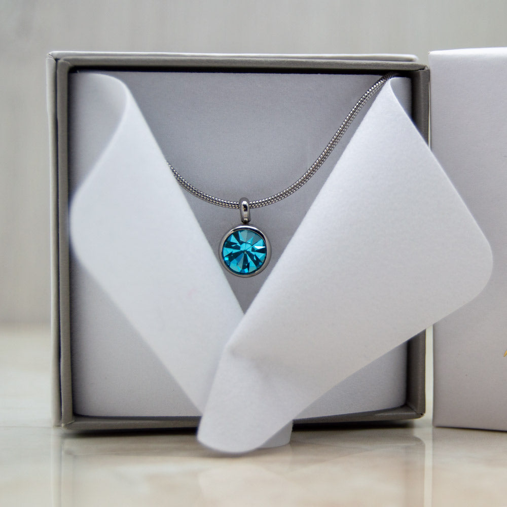 March: Swarovski Aquamarine. The March birthstone is often associated marital happiness and superior intellect.