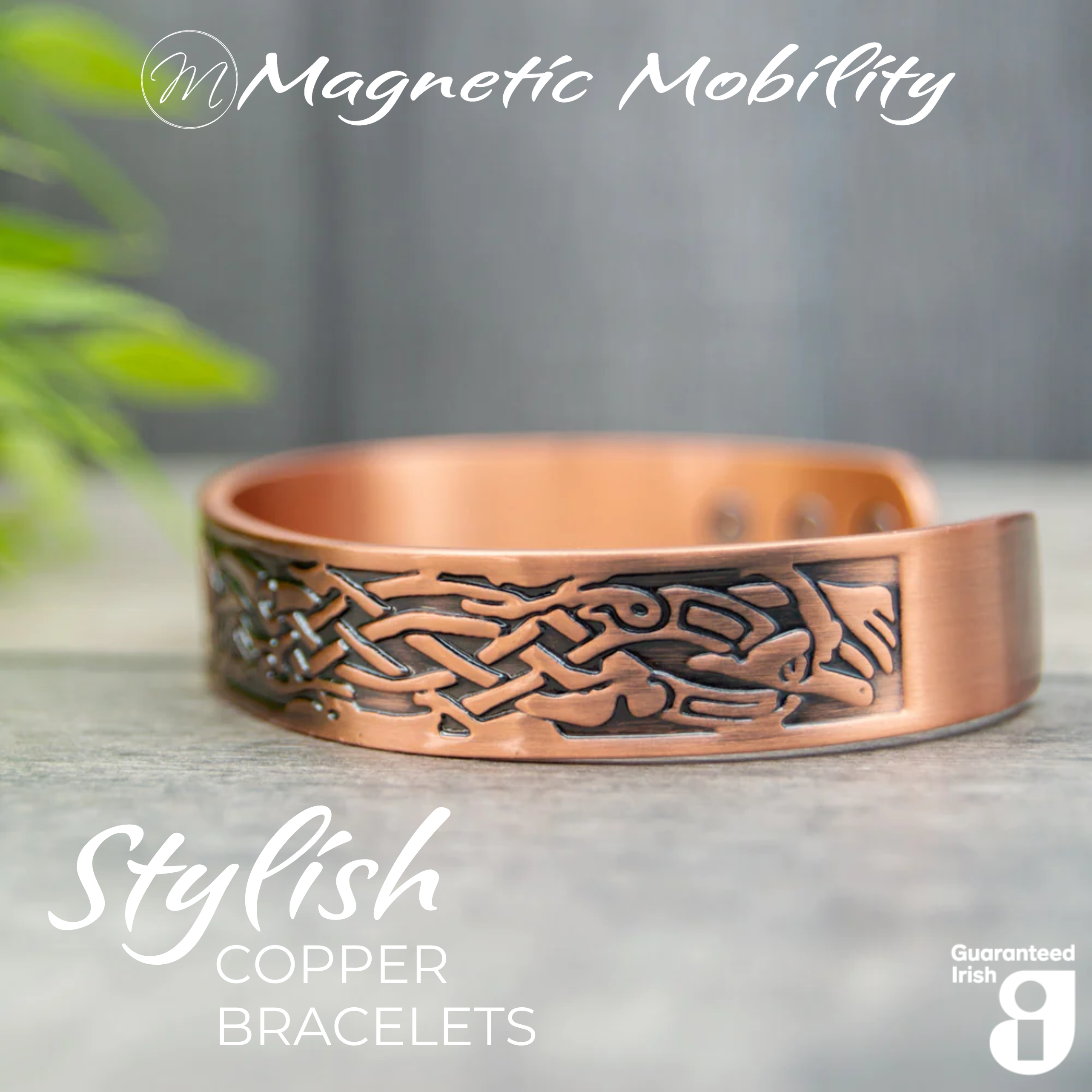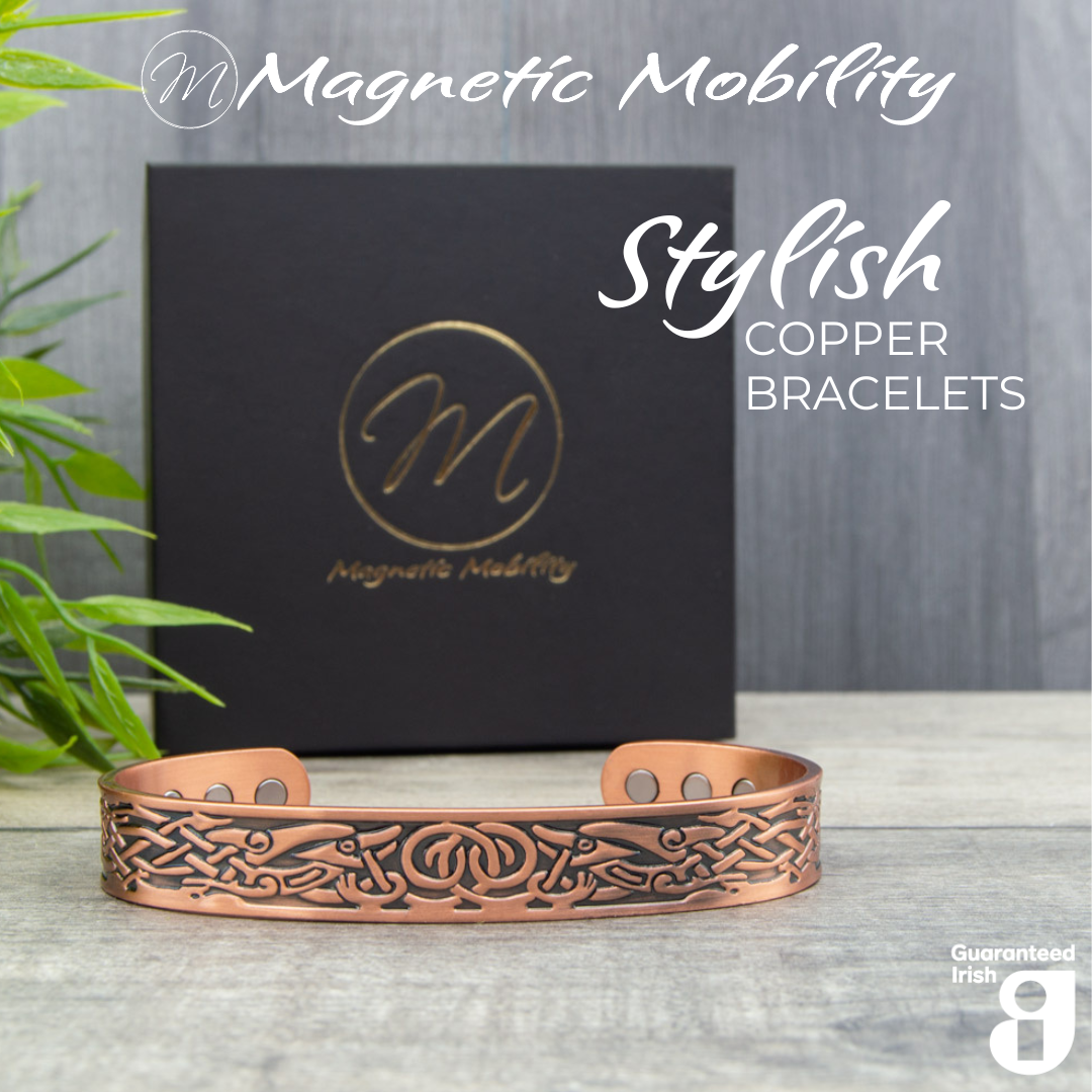 Introducing the Clover Copper Bracelet where tradition meets contemporary flair. Crafted with an eye-catching Celtic knot cradled by two intricately designed birds, this bracelet speaks volumes about ageless Irish artistry. Made from 99.9% pure copper or silver-plated copper, the Clover is as much about wellness as it is about style.