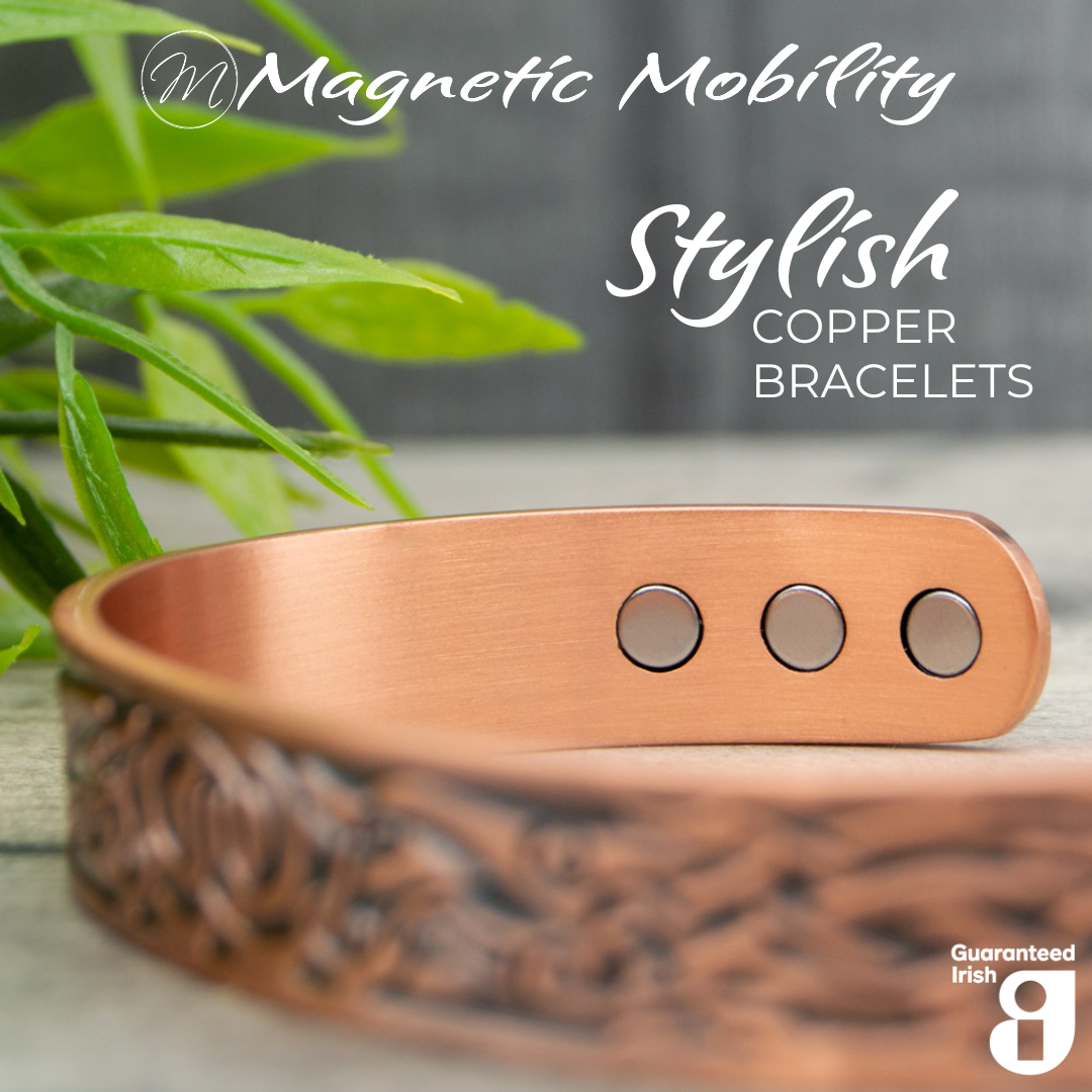Equipped with six potent Neodymium magnets, the Clover Copper Bracelet is your go-to for daily elegance and overall well-being (read below for more details). Its 12mm band width provides the right balance between aesthetic appeal and comfort, offering two sizes medium at 17.5cm and large at 19cm for an effortless fit.