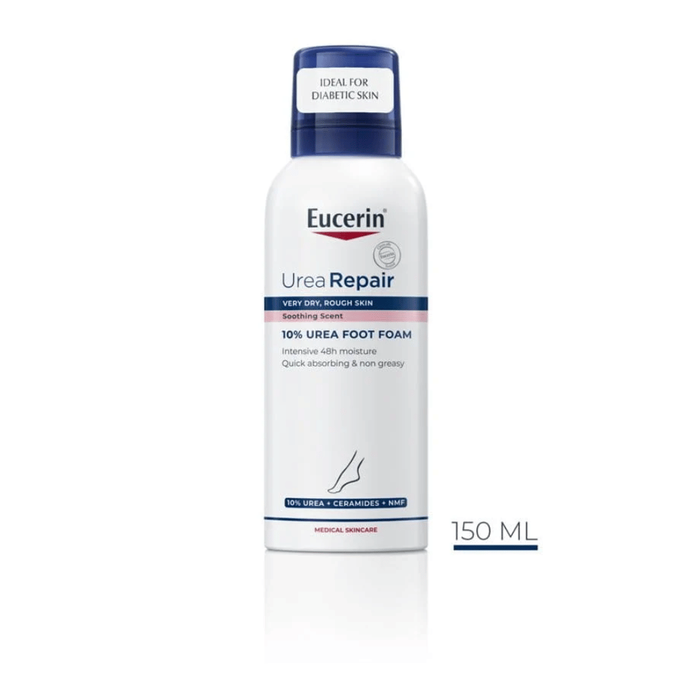The UreaRepair 10% Urea Foot Foam containing 10% Urea + Ceramides & Natural Moisturizers as well as Dexpanthenol & Decanediol relieves dry skin immediately and provides a pleasant skin feeling. The ultralight foot foam absorbs very quickly with a non-greasy and non-sticky finish. The perfume is especially designed for dry skin. It is clinically tested and contains skin-calming components and is free of common allergenic ingredients.