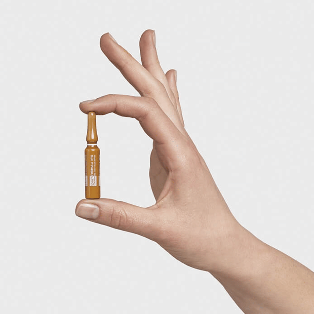 FORMULA No.10 is a 10-out-10 ampoule because it has the lot. With Vitamin C-Tech, proteoglycans, colour pigments and sunscreen for sun protection factor 30 and UVA and UVB protection. This combination is synonymous with moisturising, antioxidant and firming efficacy and a touch of colour... in a single application.