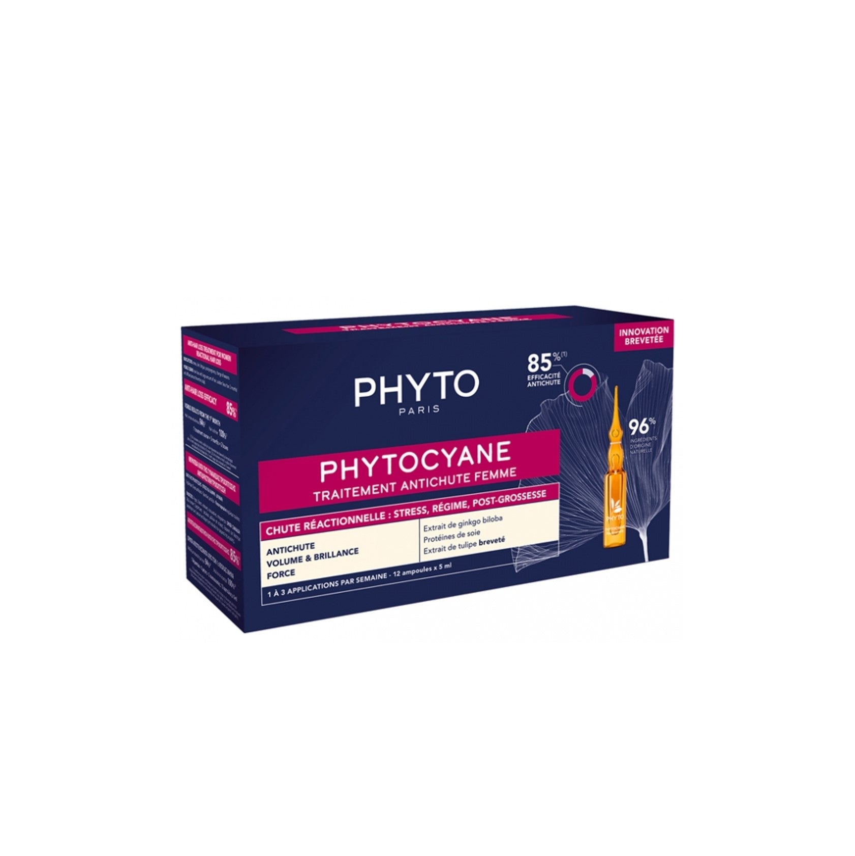 Phyto Phytocyane Anti Hair Loss Reactional Treatment Women 12 x 5ml is a care intended to fight against reactive hair loss: stress, diet, post-pregnancy, change of season, in women.