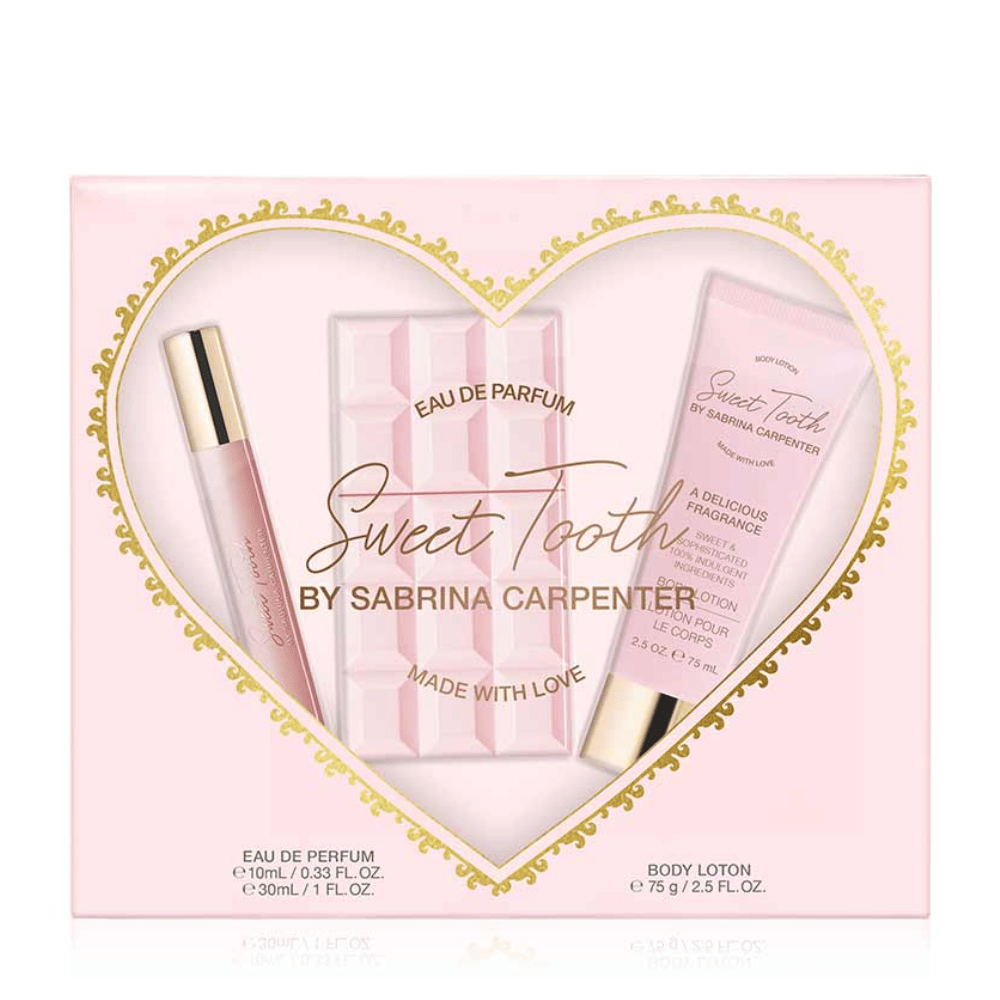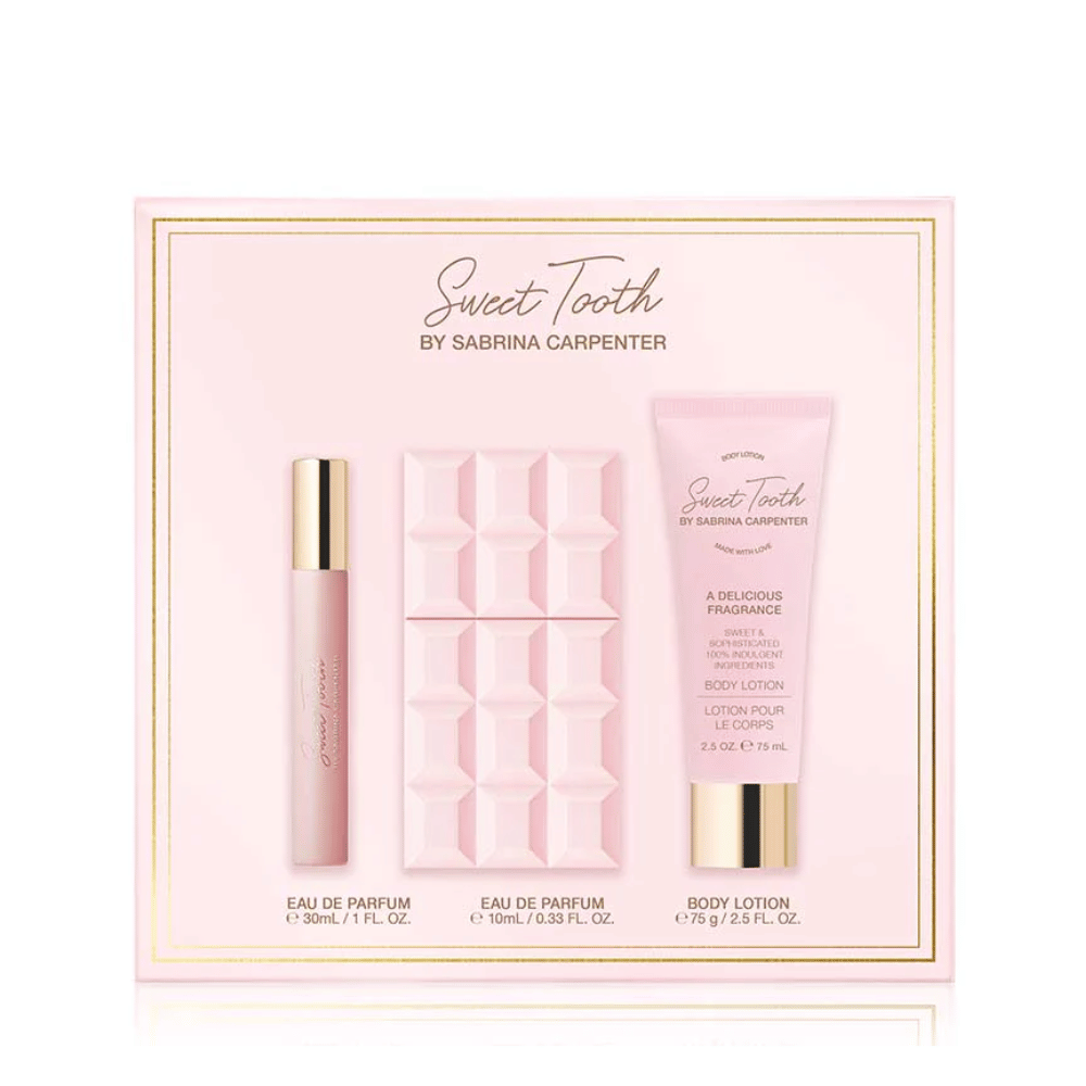 The Sabrina Carpenter Sweet Tooth Gift Set is a dreamy treat for fragrance lovers. Inside, you’ll find the indulgent Sweet Tooth Eau de Parfum, a handy travel-size spray for scent on the go, and a luxuriously scented body lotion. Beautifully packaged and ready to gift, this Sabrina Carpenter set makes the perfect Christmas present for someone special, or a sweet treat for yourself.
