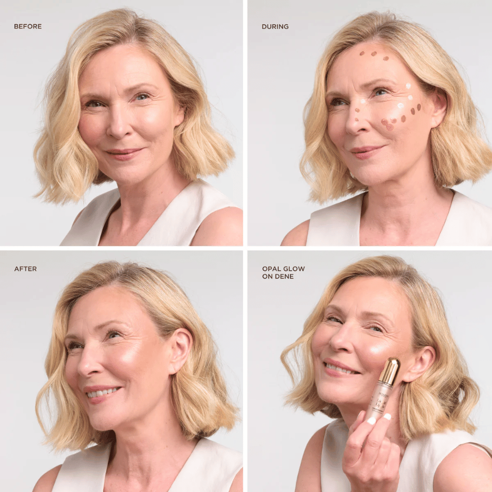 Opal Glow: A soft, champagne golden highlighter designed to flatter fair to medium skin tones