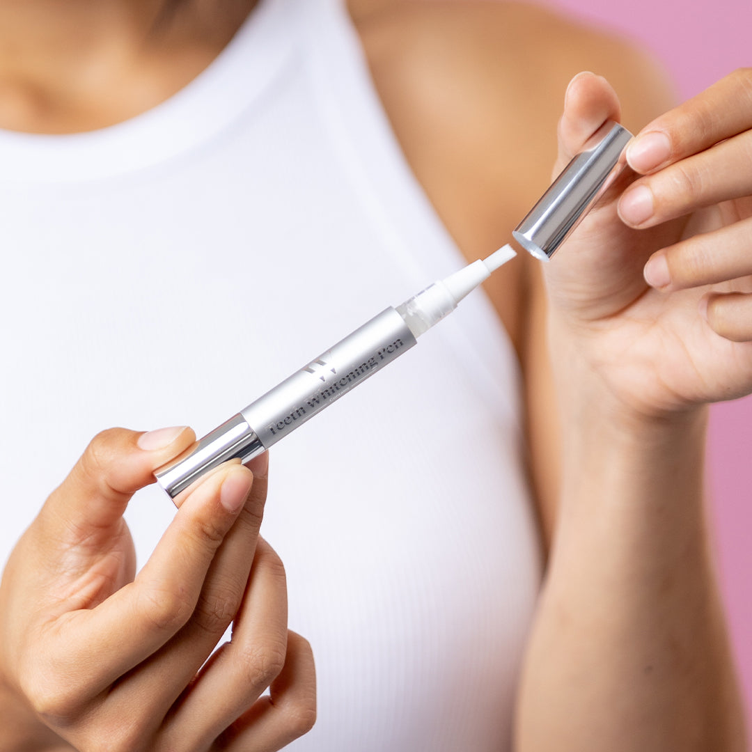 Our Teeth Whitening Pen is formulated with the active ingredient Hydrogen Peroxide, which is clinically proven to whiten teeth. Unlike other pens which use a white paint-like substance to cover stains, this formula actively dissolves stains for long-lasting results.